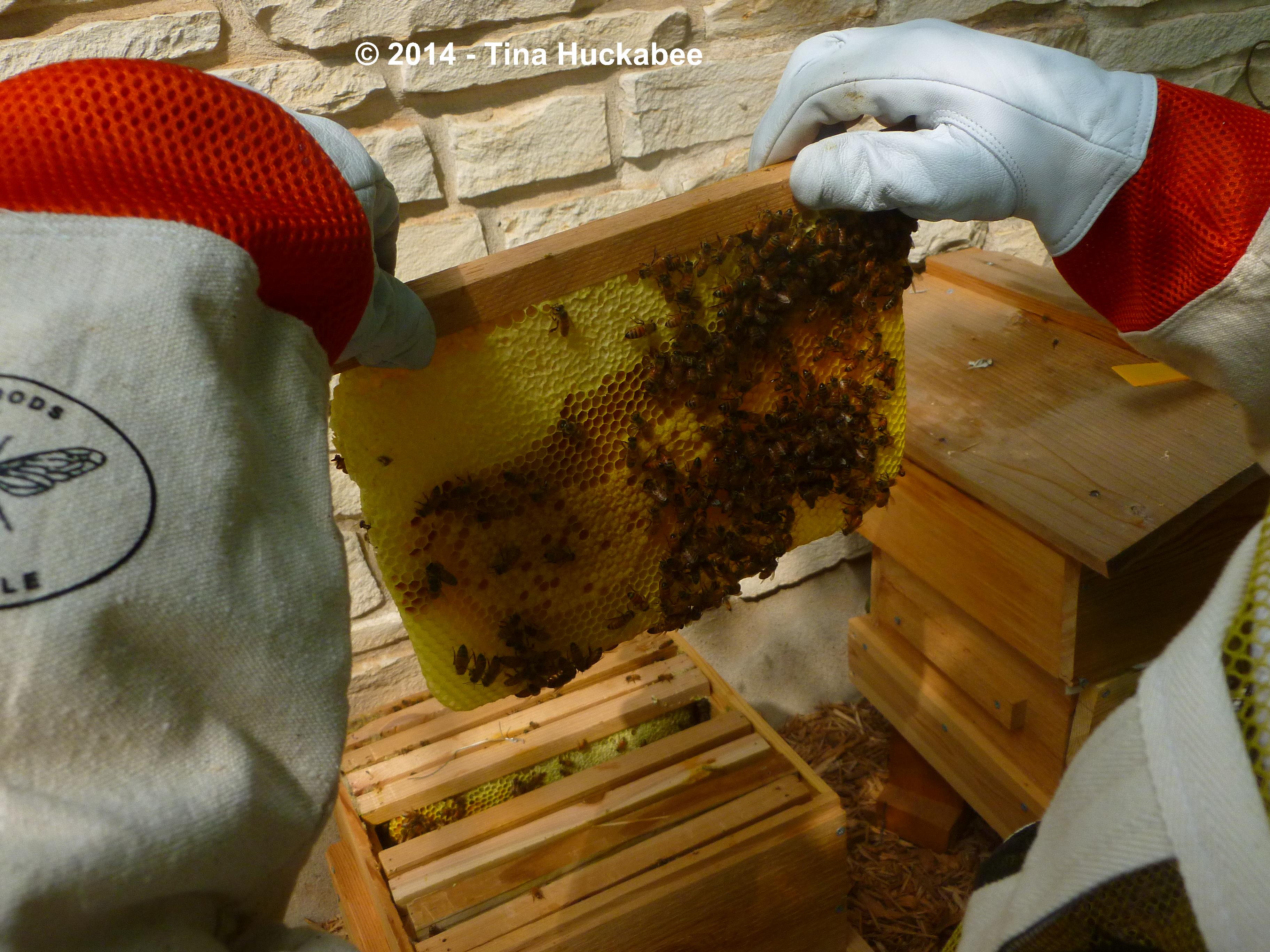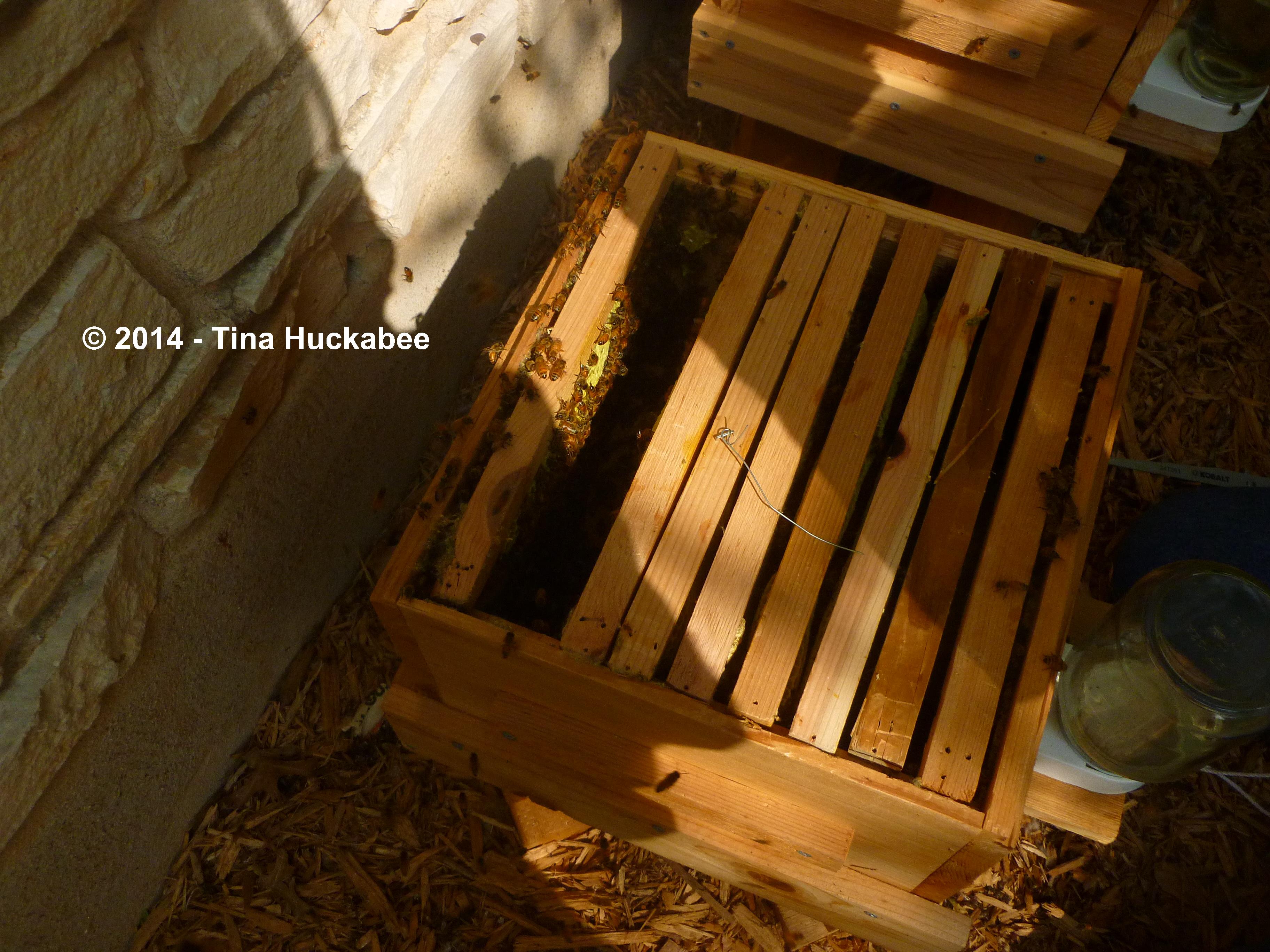 I also deposited the bits of broken comb on top of the hives.