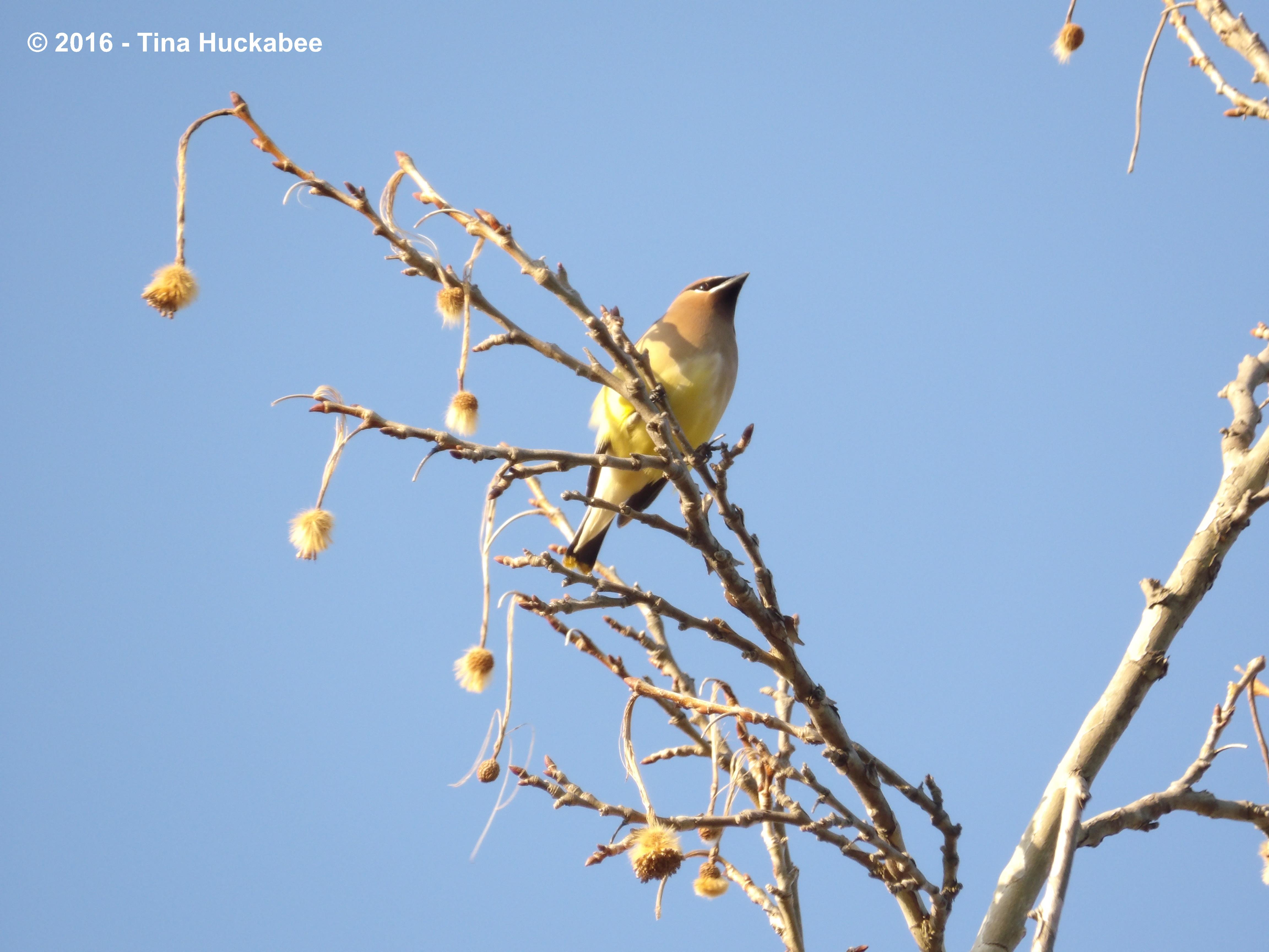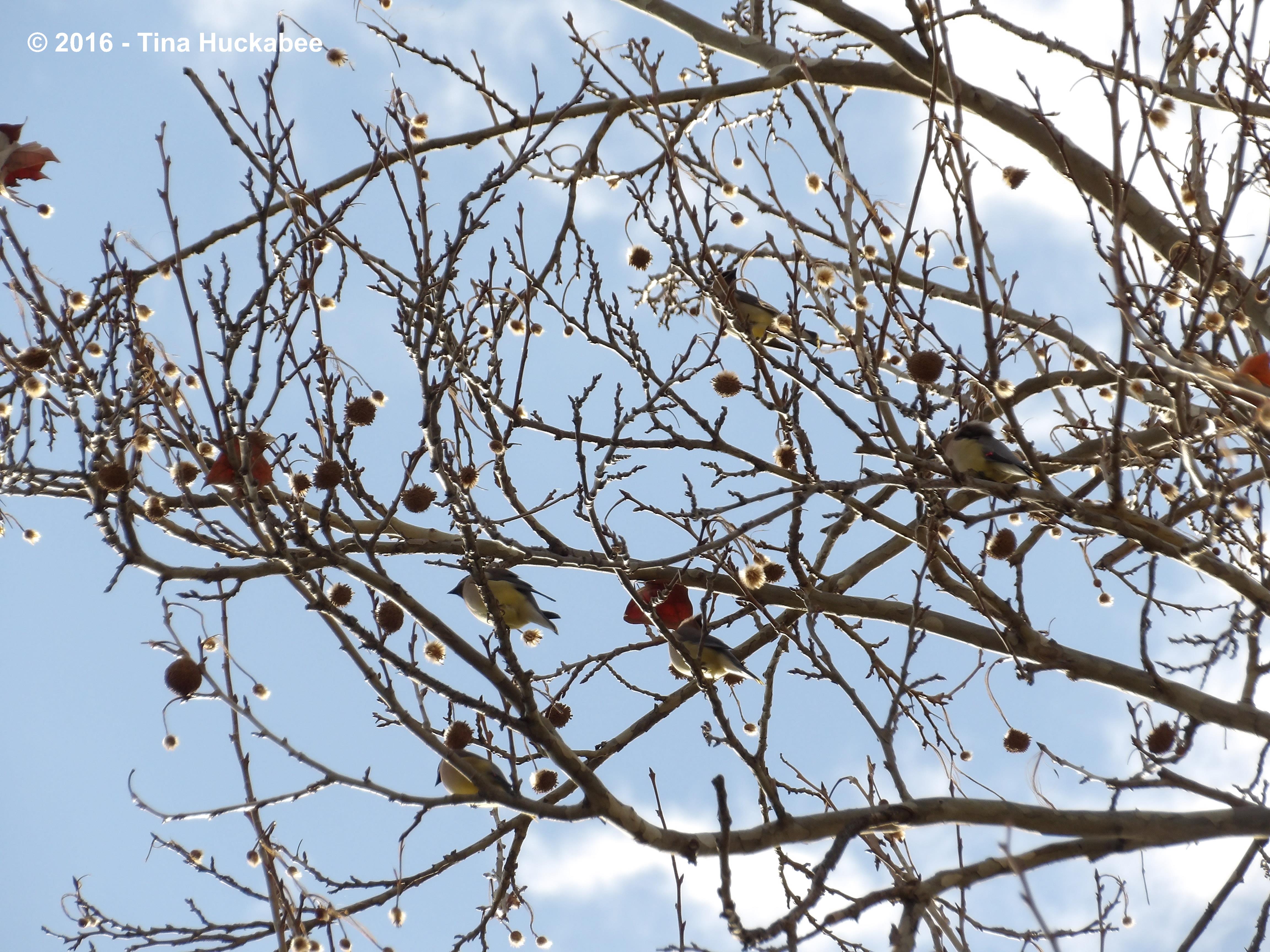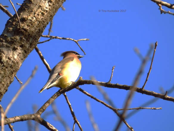 Toward the end of the month, the Cedar Waxwings, Bombycilla cedrorum, appeared in their usual flocks of many. This beauty is an anomaly as he sits quietly and alone, proudly perched in the Red Oak.