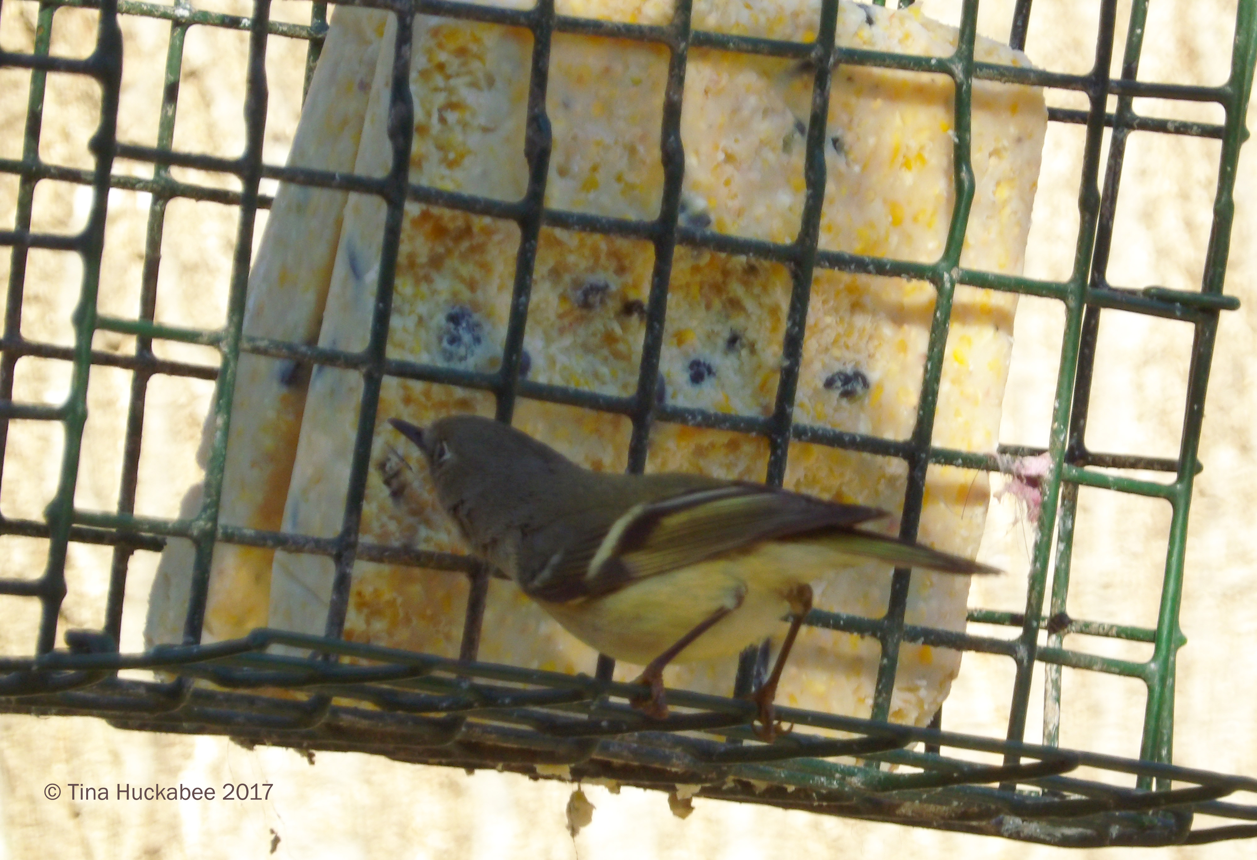I think the two that I’m seeing regularly are females, but last year there was a male in the mix. These seasonal warblers will hang around until March or early April. I hope that I can identify individuals by the time they leave for their summer breeding grounds much farther north in Canada and the northern states of the U.S.