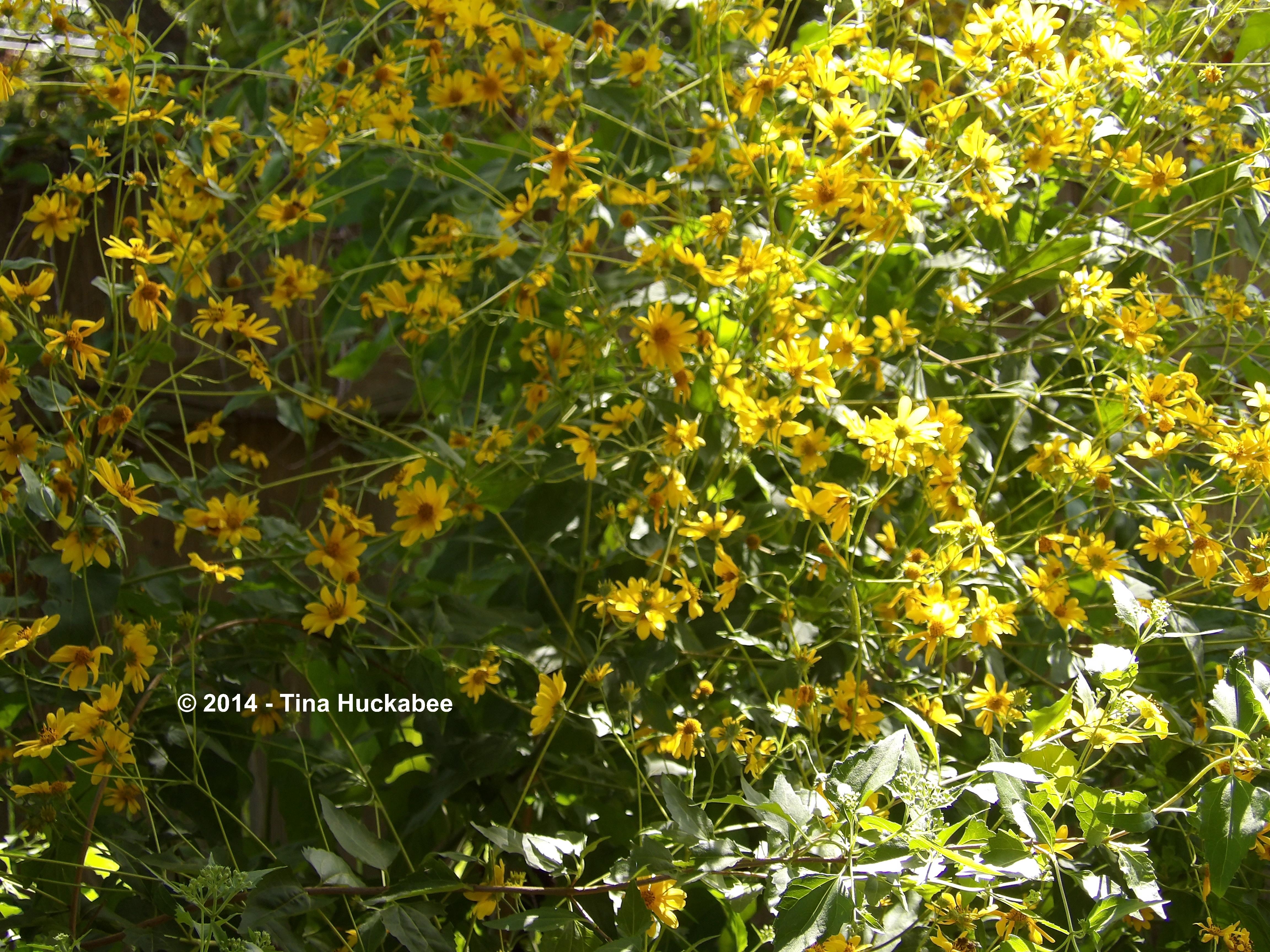 The Lesser Goldfinches, Spinus psaltria, descended on the Goldeneye as the flowers went to seed.