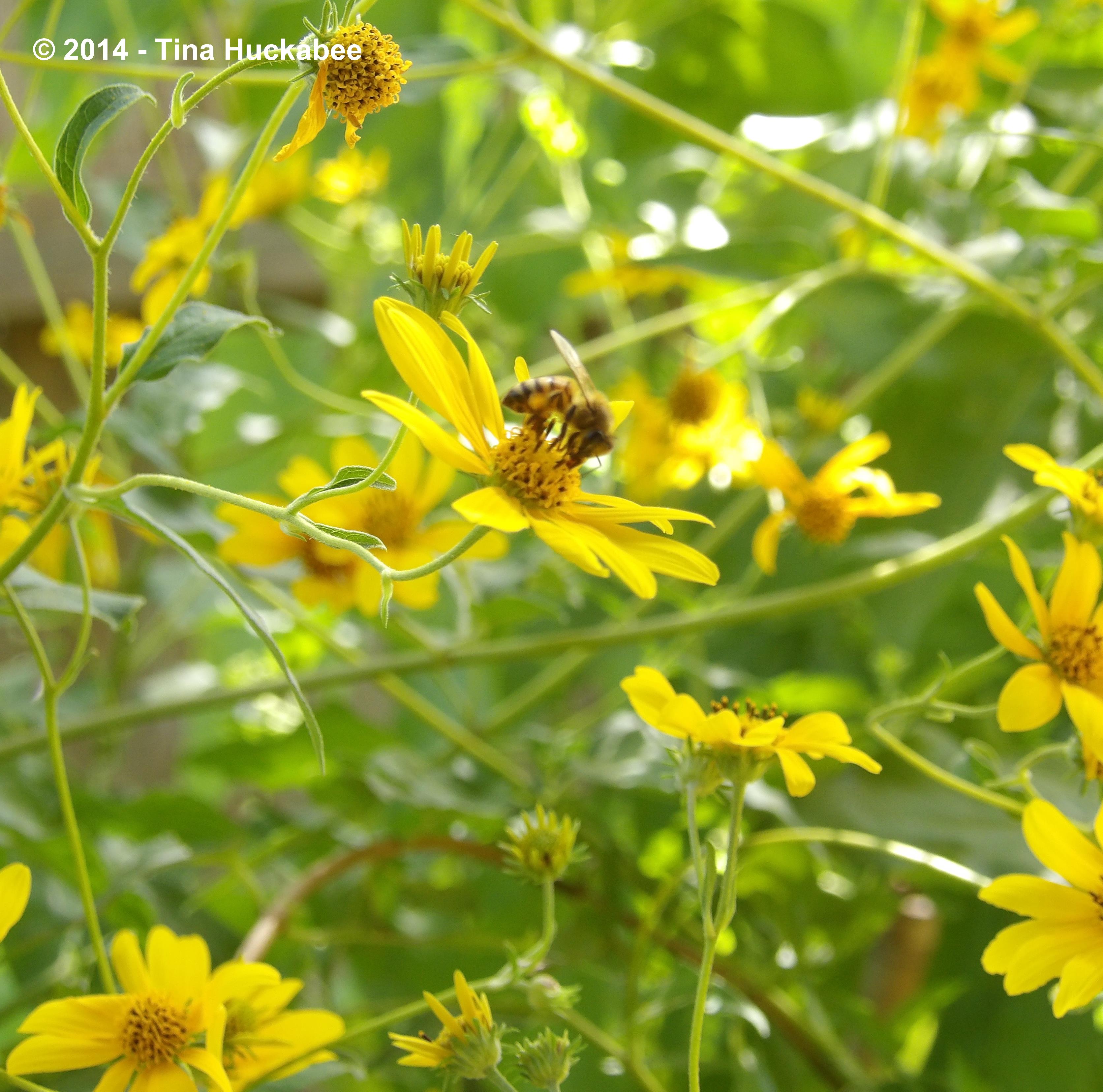 I think this little insect is a sweat bee of the Halictidae family. He/she was busily working a Goldeneye bloom. Small bloom, smaller bee. I thought that I would definitely find a photo and identifying information for this critter, but didn’t locate information which gives me total confidence on my identification. I’ll have to take a guess on this one.