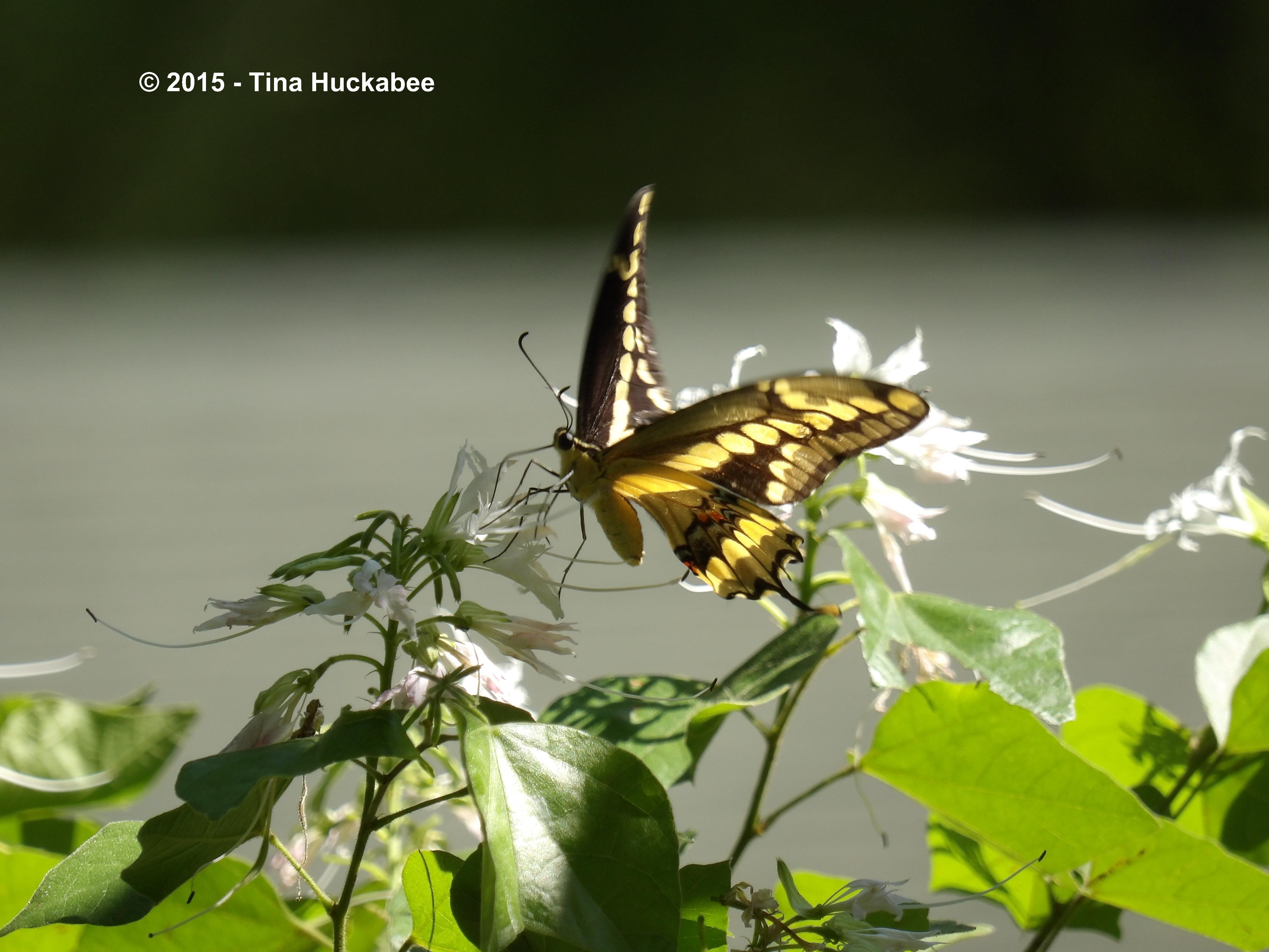 Common in Austin, the Pipevine Swallowtail, Battus philenor, is a high, strong flyer. Though this one,