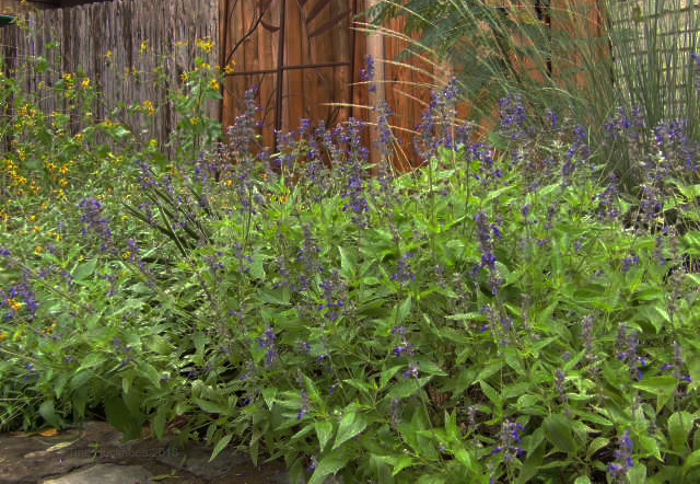 While our blue skies are recently rare, my blue fix is provided by patches of Henry Duelberg Sage, Salvia farenacia.