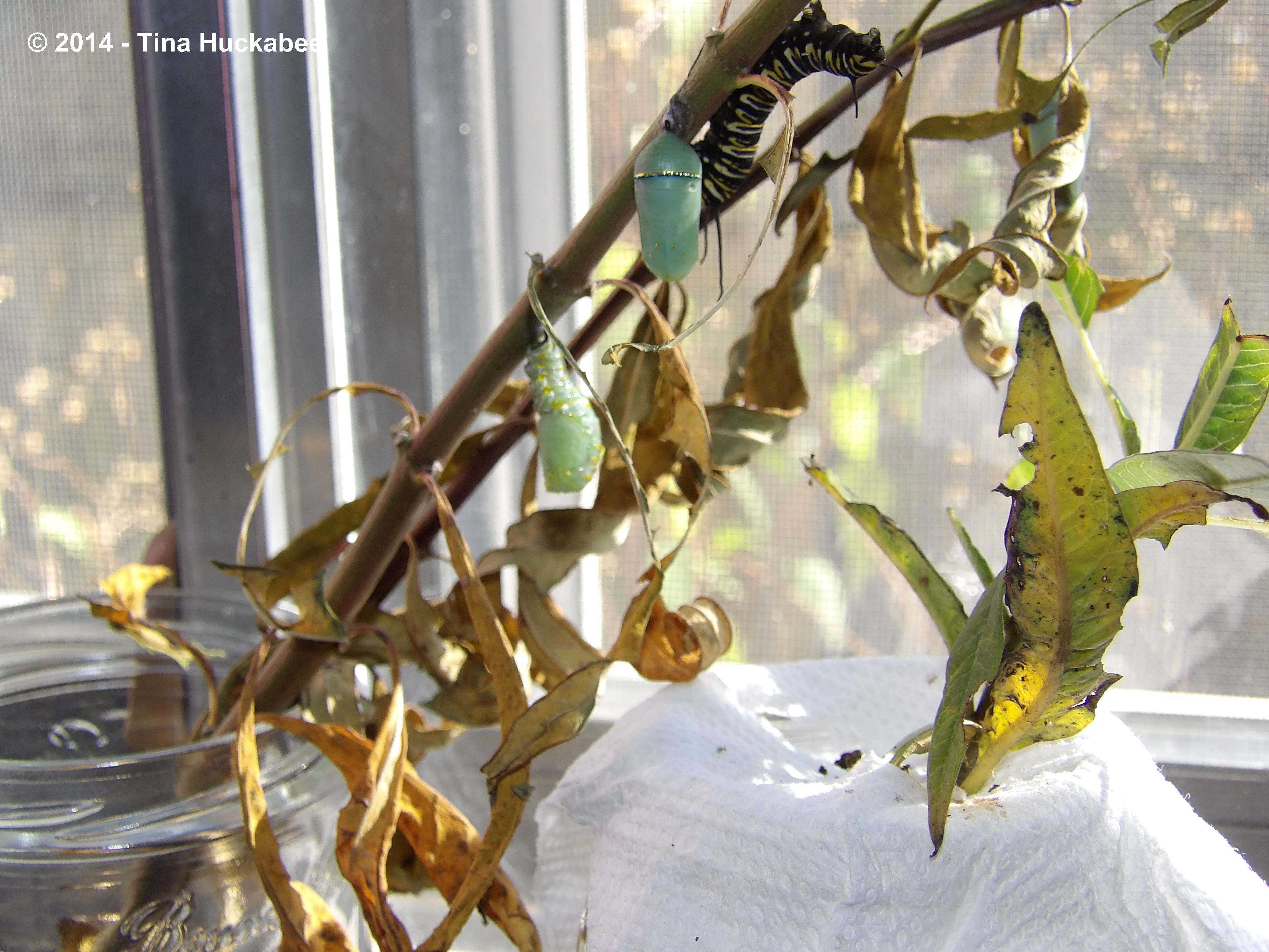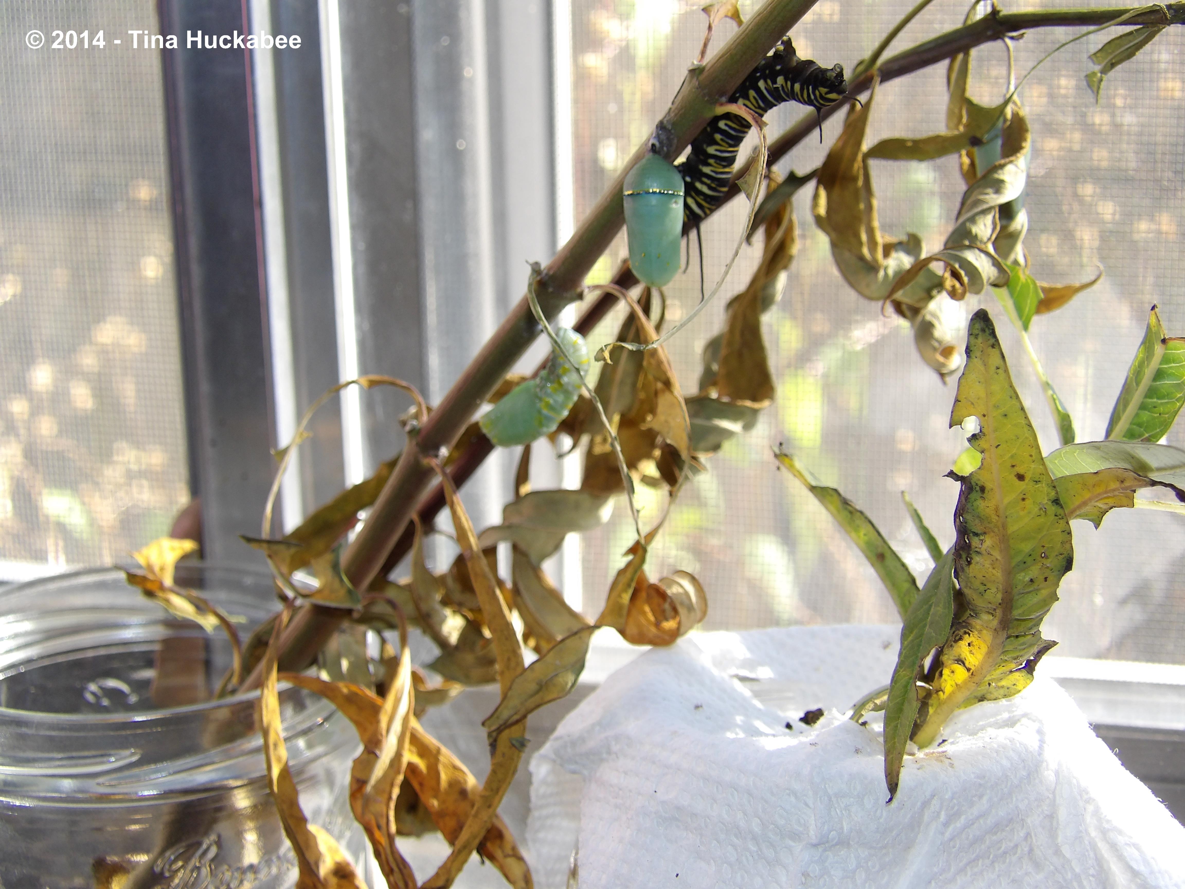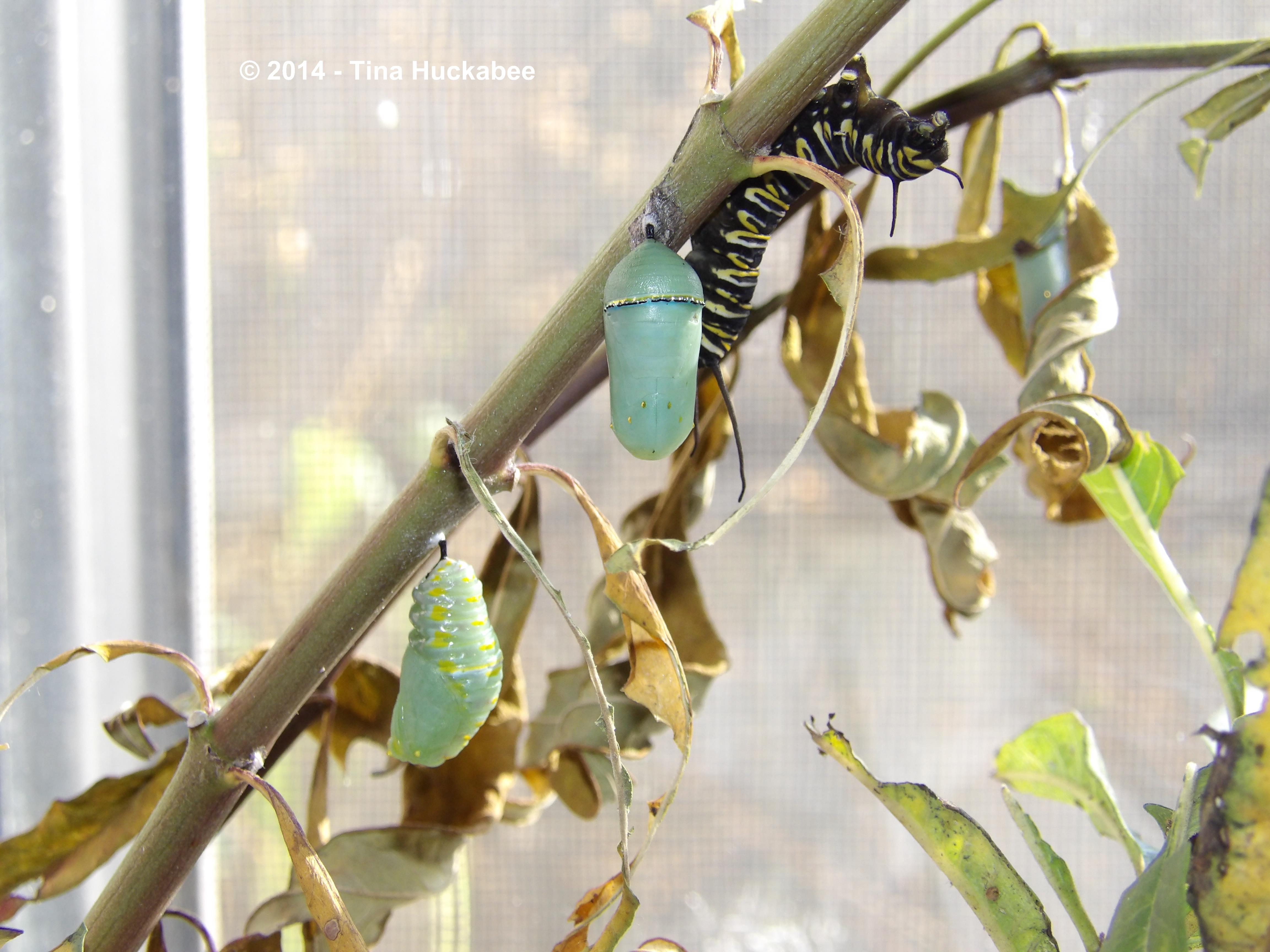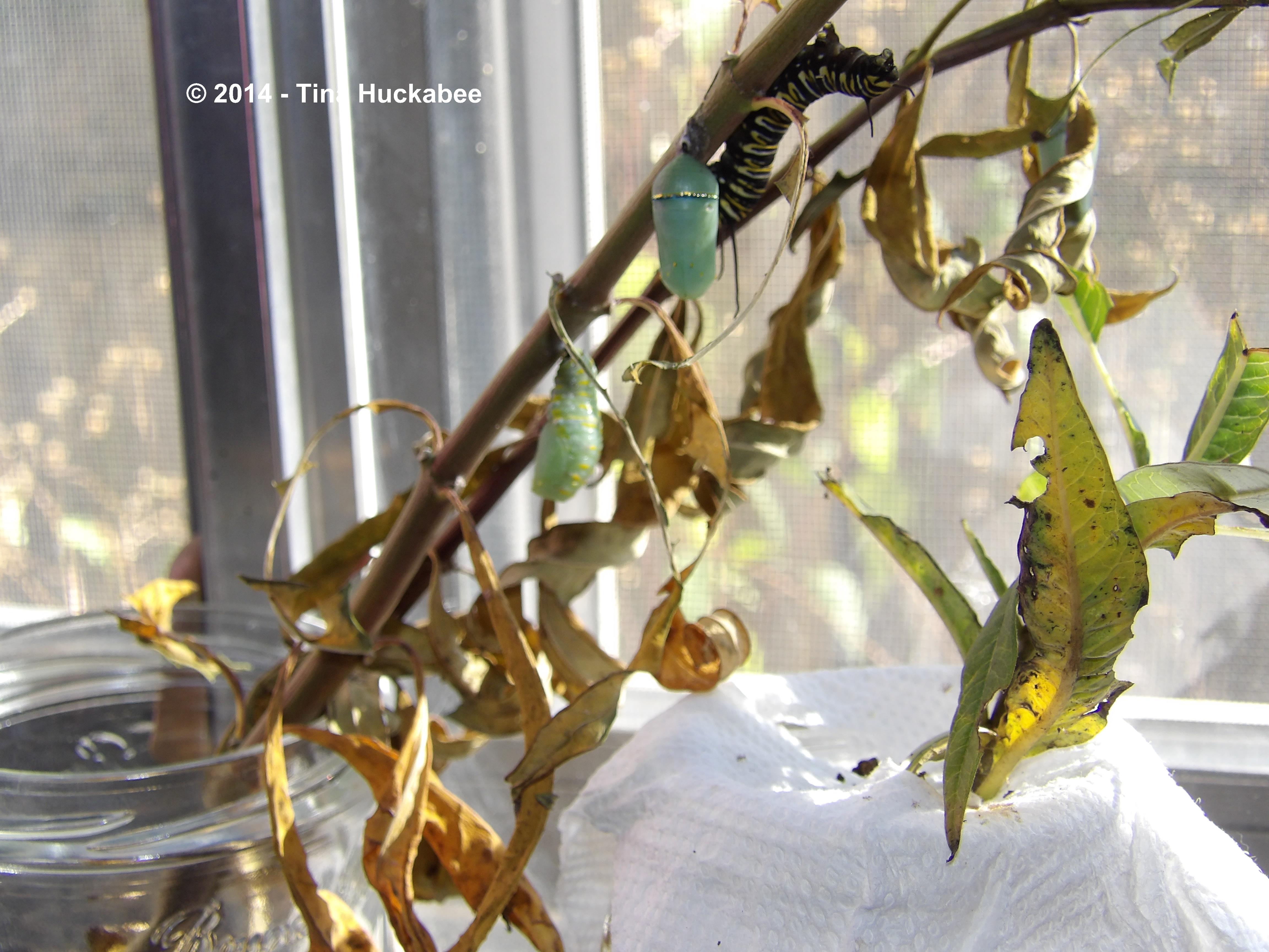 The Monarch requires the milkweed, Asclepias, species for its survival. The females lay their eggs on the milkweed plant, the larvae eat at that plant (and that plant ONLY). The larvae form into the chrysalides, hatch into adults, and the cycle continues with the next breeding generation. Adult Monarchs can feed from a variety of nectar sources, though they typically prefer native plants and wildflowers. The larvae? Those green/black/yellow cats only have jaws for milkweed. All this eating, morphing, flying, and breeding occurs during the remarkable 2000-3000 mile yearly migration: winter in Mexico, flying through Texas in spring, then upwards through the mid-West to Canada in the summer, back again through Texas in autumn, finally to their mountain habitat in Mexico for winter.
