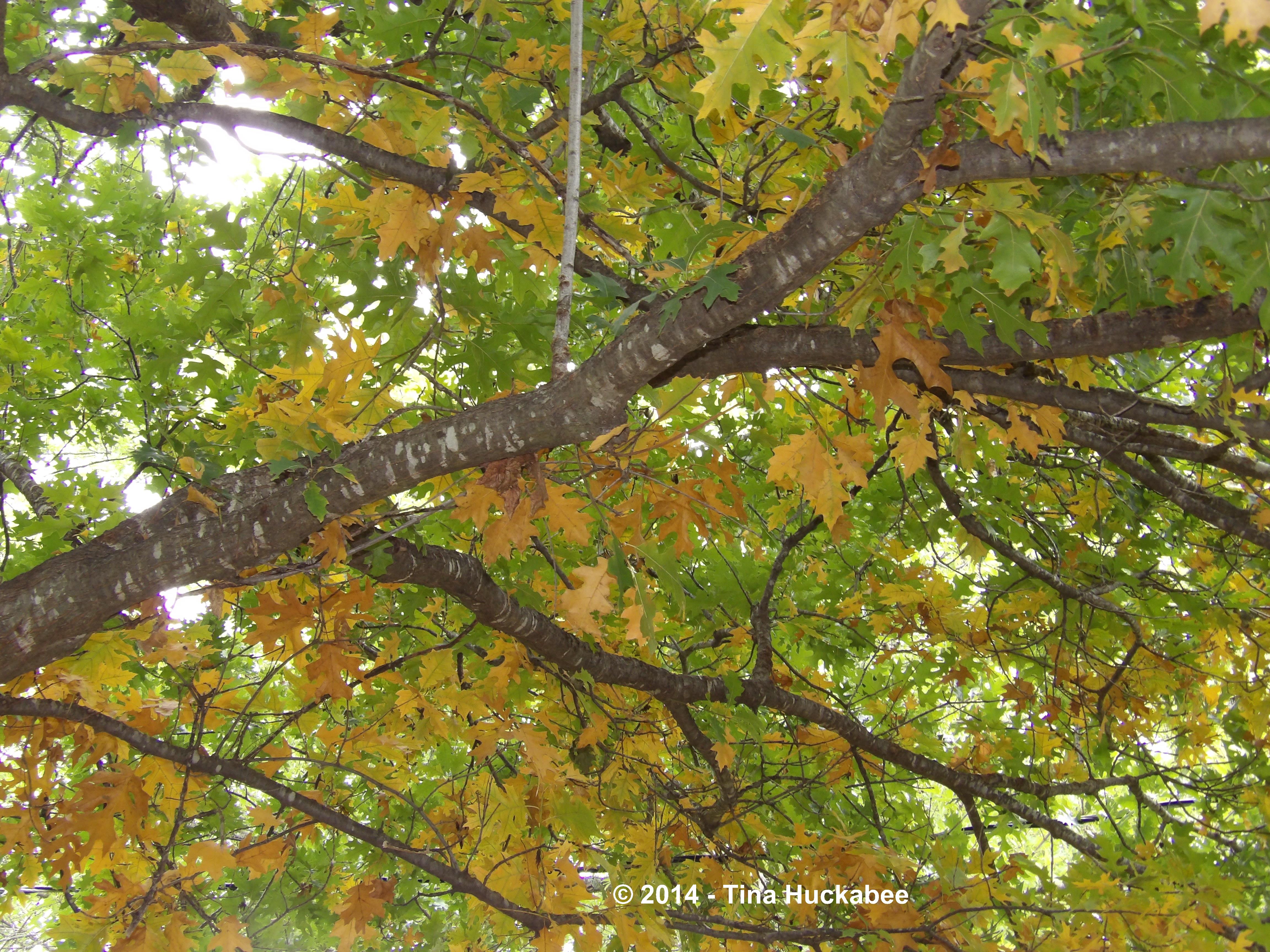 Finally, the leaf change is beginning on my Red Oak, Quercus coccinea.