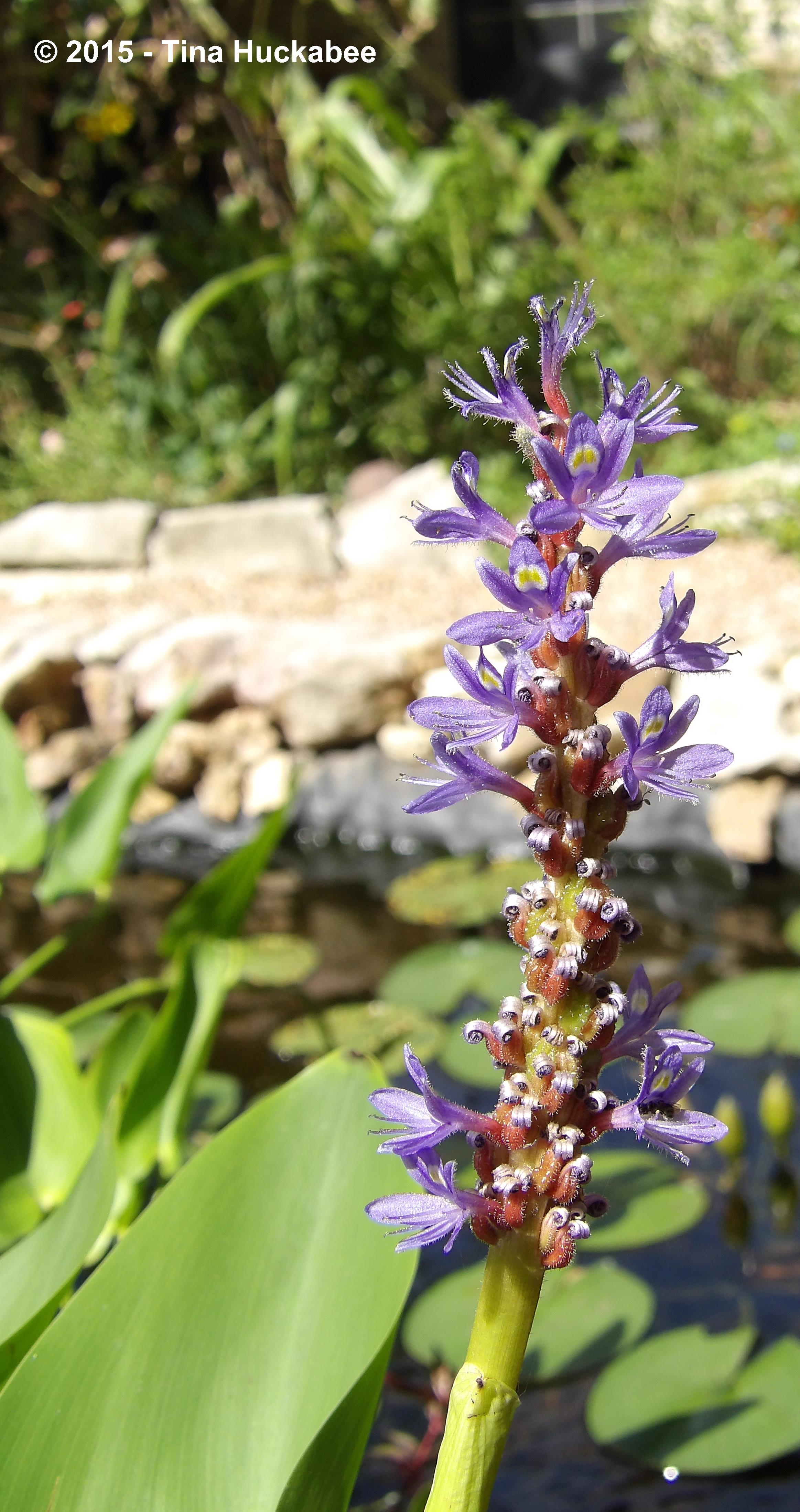 Orange and purple are a stunningly clashing combo, but that combo often works well and no more so than when my resident Neon skimmer rests on the purple bloom stalk of the Pickerel rush, Pontederia cordata.