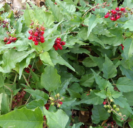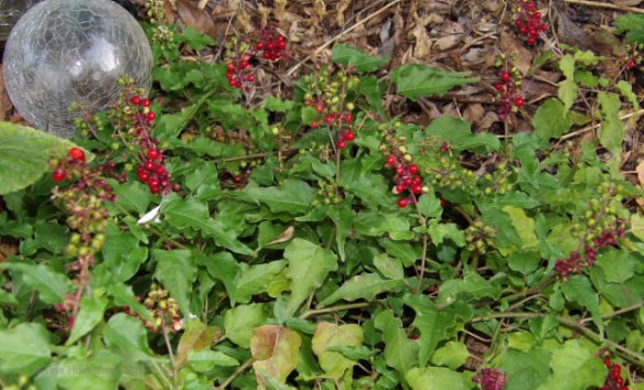 For wildlife, autumn provides a boon of berries, and Texas native plants oblige in spades. Pigeonberry, Rivina humilis, is a favorite of birds, especially–you guessed it–of pigeons and doves.