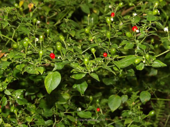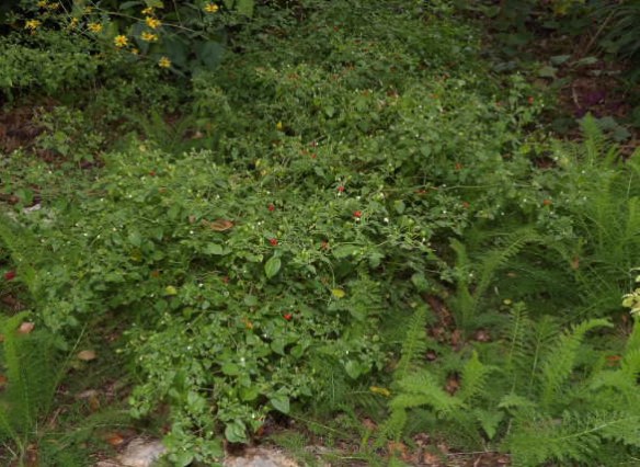 Another native plant, the deciduous herb, Chili pequin, Capsicum annuum, provides fruits for birds and mammals. Birds are frequent visitors, so much so that another common name for this plant is Bird pepper. Texas’ only true native chili pepper, the fruits are hot, but birds (and husbands) love the taste.