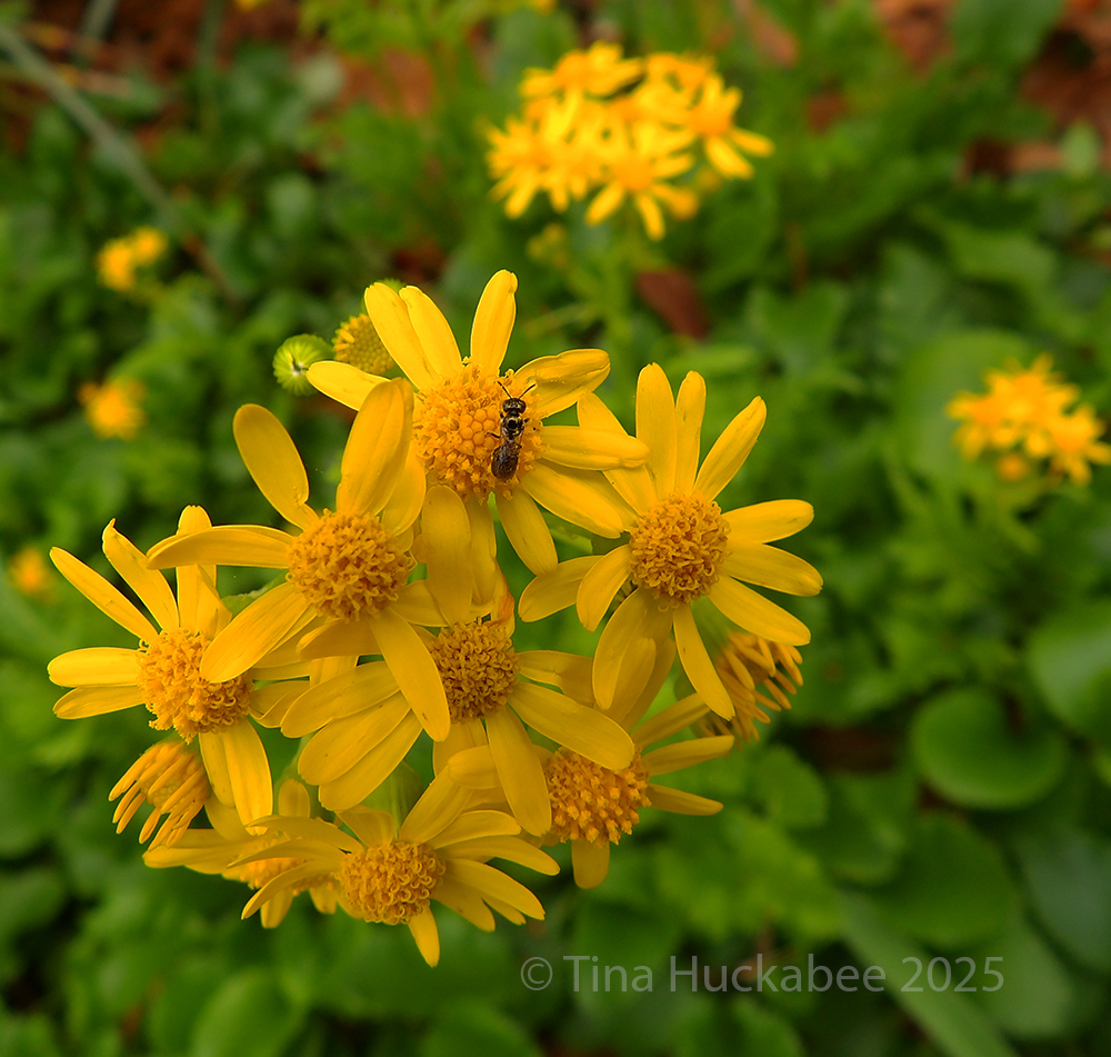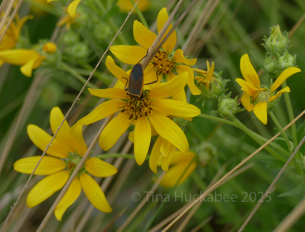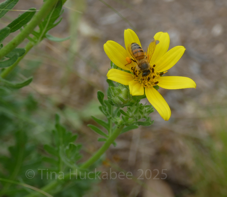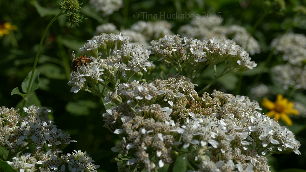 Autumn bloomers are important sources of nectar and pollen before winter sets in. Late summer/autumn blooming perennial shrub, Frostweed, Verbesina virginica, worked by a honeybee, whose corbiculae (pollen pantaloons!) are filled with pollen goodness.