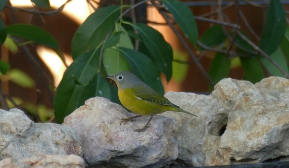 Actually, I have no idea if this is the same warbler I’ve spotted several times, or simply another Nashville sojourner, though all the ones I’ve seen have been male. Nashville Warblers breed in Canada, migrating southward through a wide swath of the United States, and wintering in Central America. I’ve seen individuals of this species in my garden before during spring migration, but never during fall.