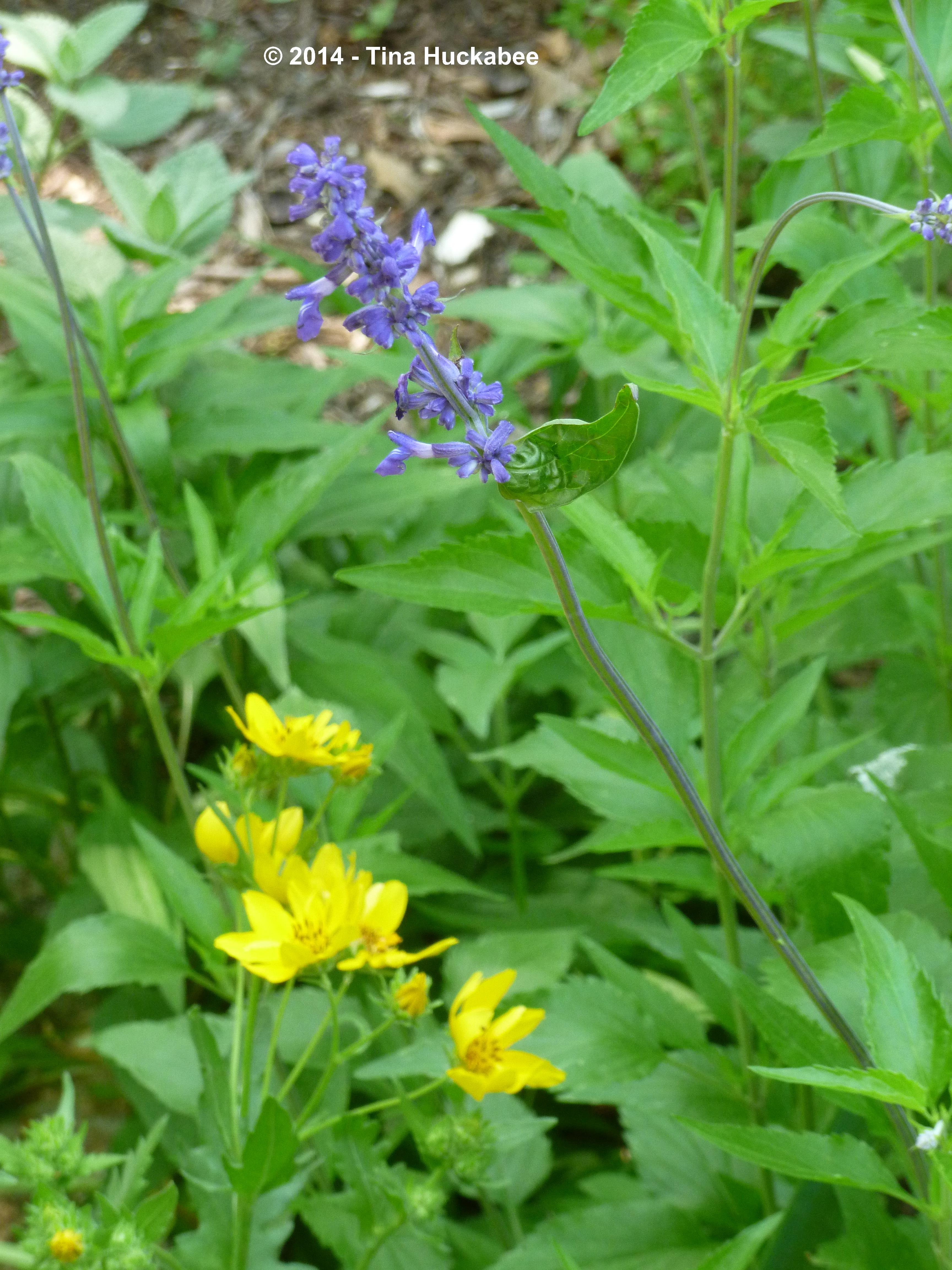 Wonderful native perennials continue strutting their blooming stuff late this growing season. Two native salvia species are providing nice nectar sources for passing bees and butterflies and a color show for the resident gardener. The Tropical Sage, Salvia coccinea,