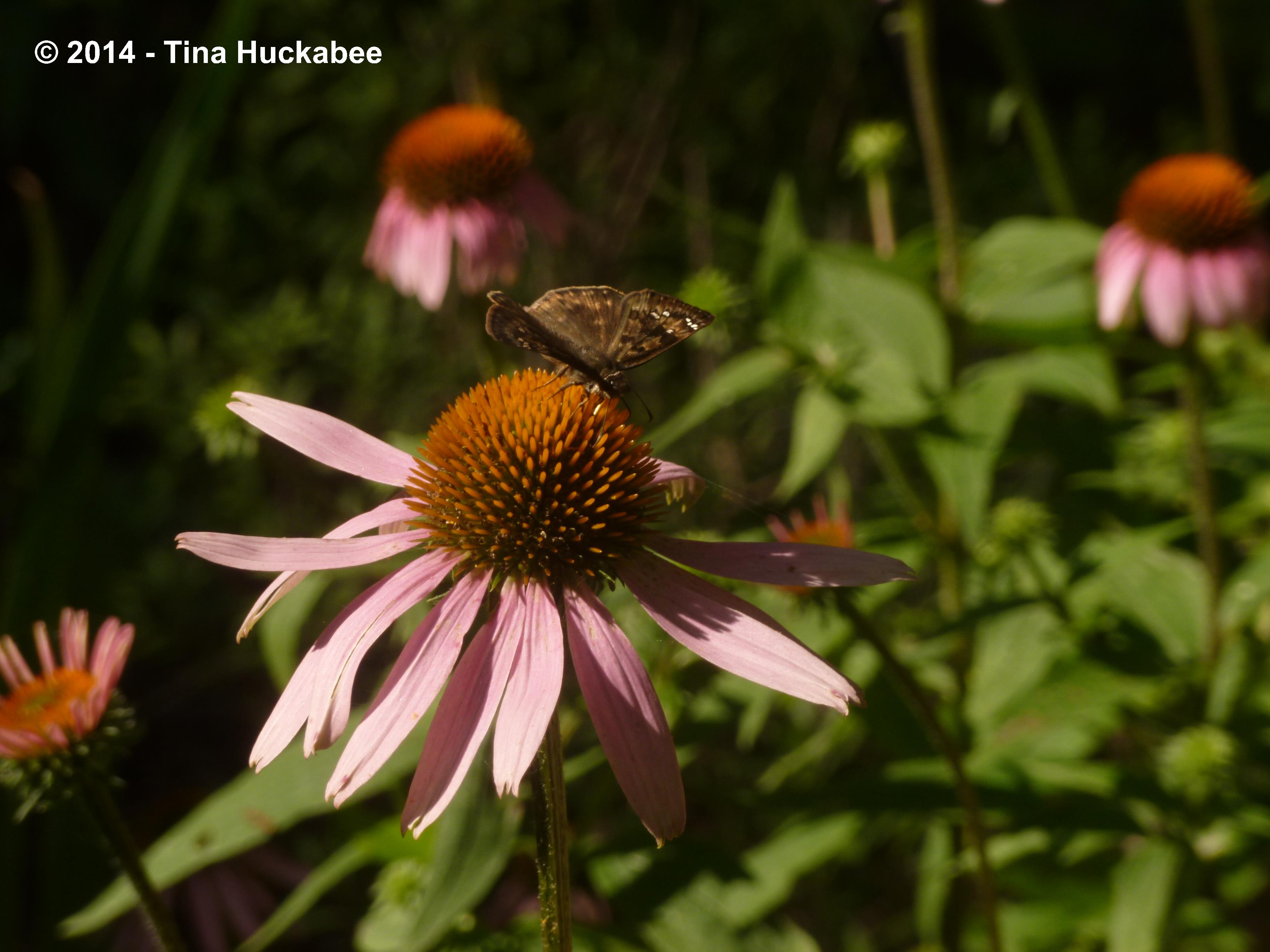 There are always a few Purple Coneflowers, Echinacea purpurea, charming the gardens. This one is planted with an unknown variety of basil-in-bloom,