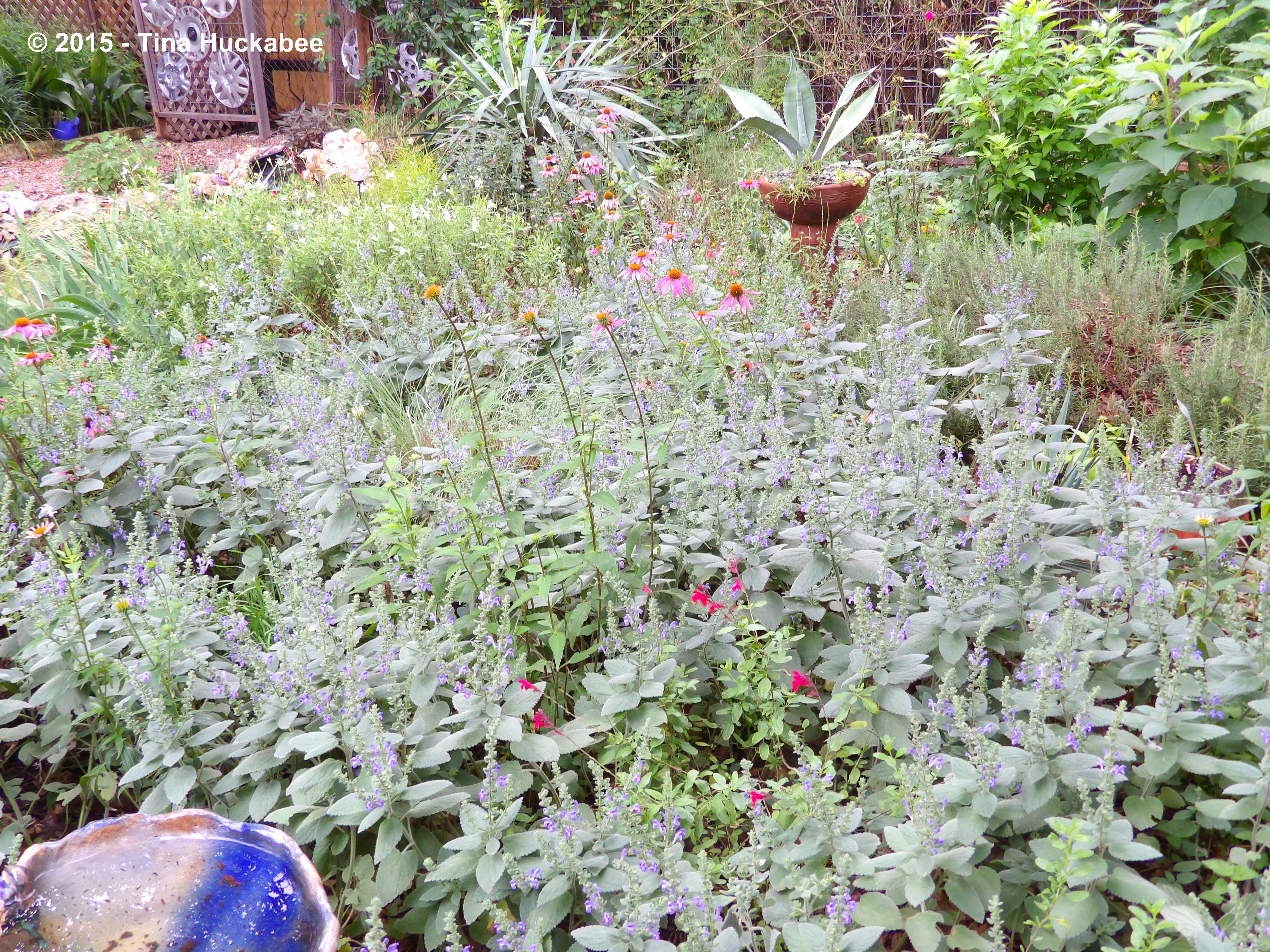 …and here, it’s planted with tiny-leafed Pink Texas Skullcap, Scutellaria suffrutescens,
