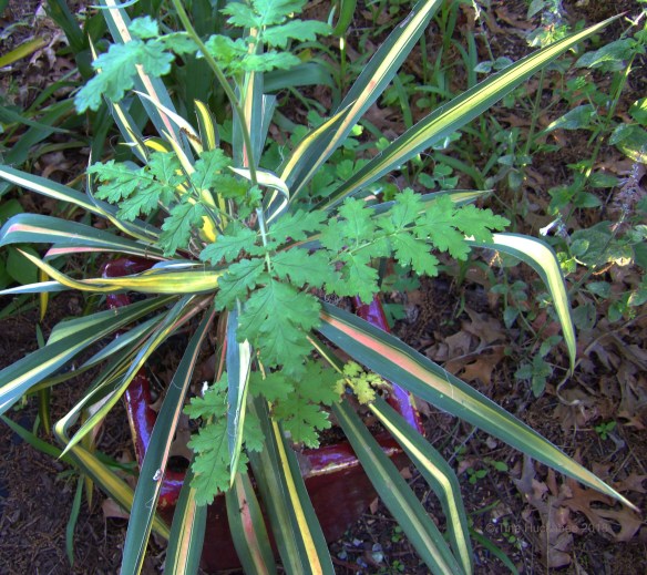 I don’t yank until I’m sure an unknown is an unwanted, so I watched. During the time that I watched and waited, a friend extolled the virtues of the Blue curls she grows in her garden, kindly offering to me some of her seedlings. An enthusiastic “yes” was my answer to her offer, and what she gave me was exactly the thing that was growing in the pot.
