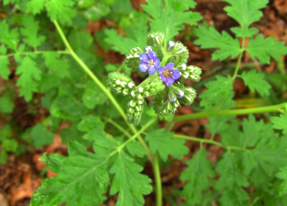 I whined to my friend, who graciously supplied me with more seeds. I spread some (not all) of the seeds out last autumn, and voila!, this spring a grand total of four plants germinated. One disappeared–subjected, no doubt, to someone’s late night munchies; another, I stepped on and crushed–yes, sometimes I am that careless. But two survived; I transplanted both to better spots, and they grew to blooming beauty! Unfortunately, the peak of flowering occurred during the first half of May when I was traveling, though I did get some enjoyment from these pretties as the first dainty blues opened shortly before I left.