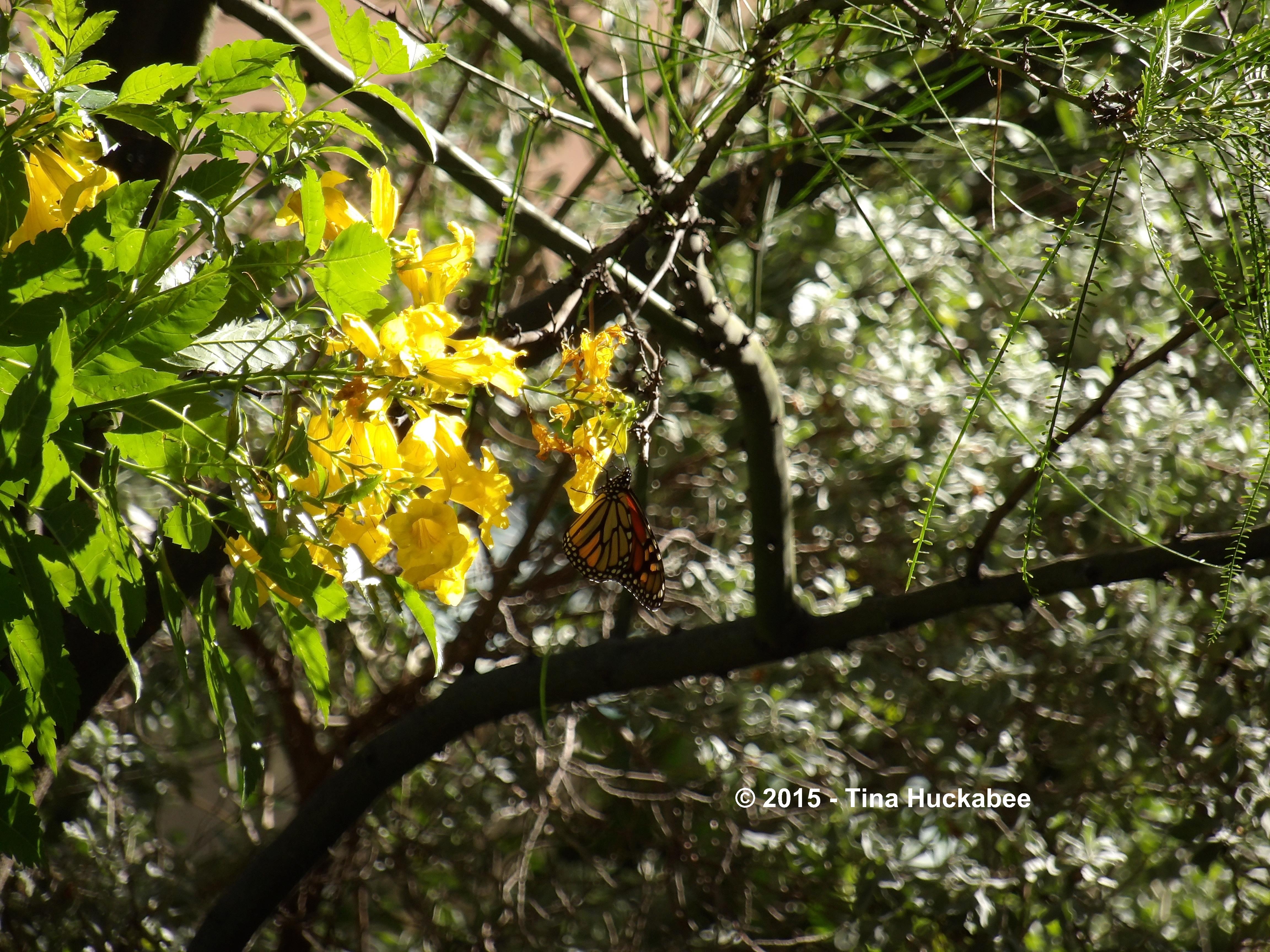 The Monarch requires the milkweed, Asclepias, species for its survival. The females lay their eggs on the milkweed plant, the larvae eat at that plant (and that plant ONLY). The larvae form into the chrysalides, hatch into adults, and the cycle continues with the next breeding generation. Adult Monarchs can feed from a variety of nectar sources, though they typically prefer native plants and wildflowers. The larvae? Those green/black/yellow cats only have jaws for milkweed. All this eating, morphing, flying, and breeding occurs during the remarkable 2000-3000 mile yearly migration: winter in Mexico, flying through Texas in spring, then upwards through the mid-West to Canada in the summer, back again through Texas in autumn, finally to their mountain habitat in Mexico for winter.