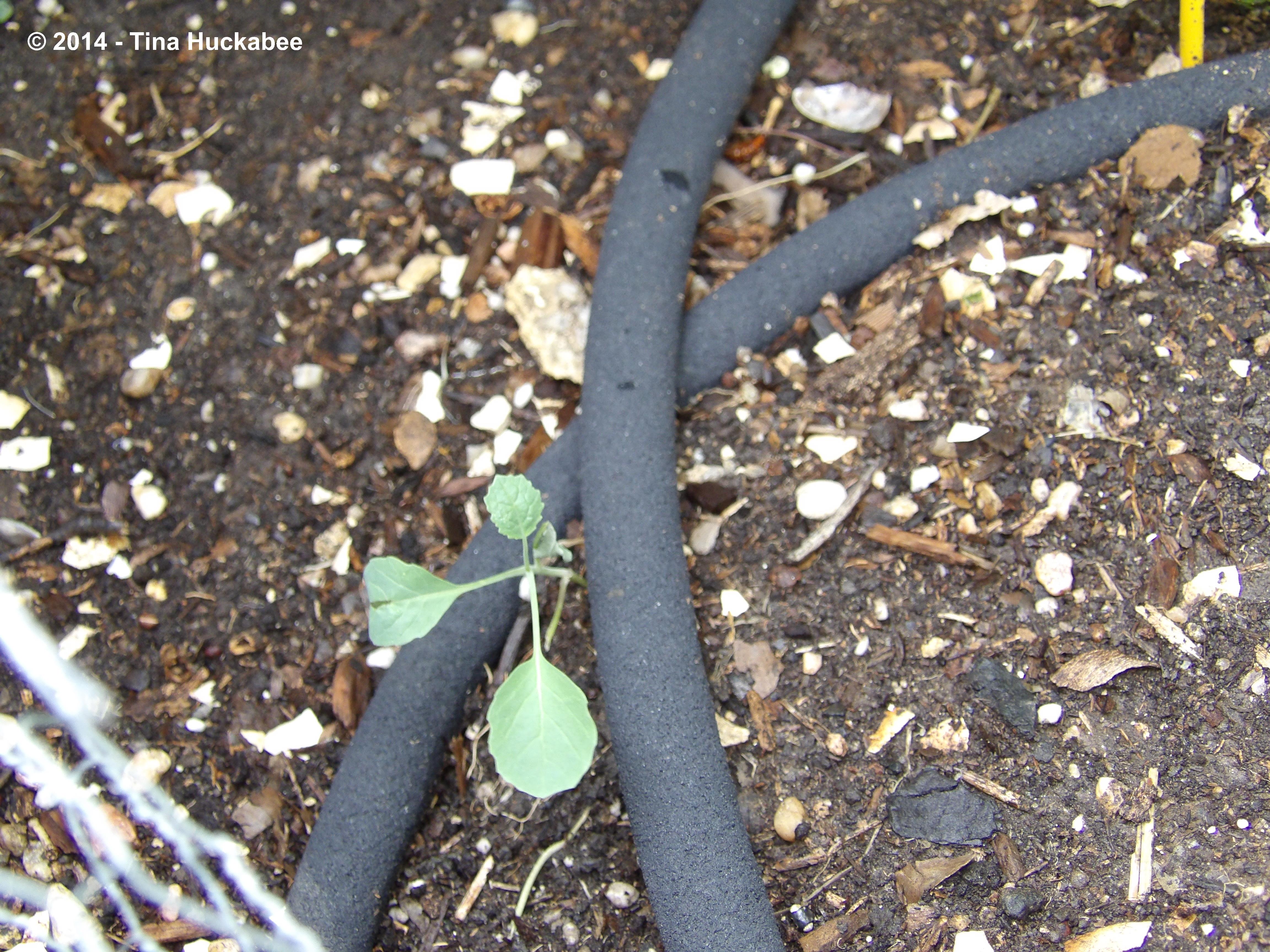 I remove some soil, then plant a four-inch sized veggie. I haven’t found it necessary to tie together the wire to keep the plants in place as the OSU video suggests, though it’s a good idea.