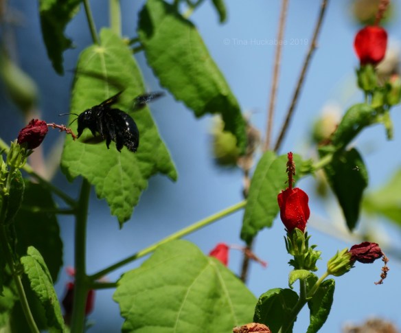 She stopped at various points along the vine, curling her abdomen to oviposit, doing her bit to continue the species.